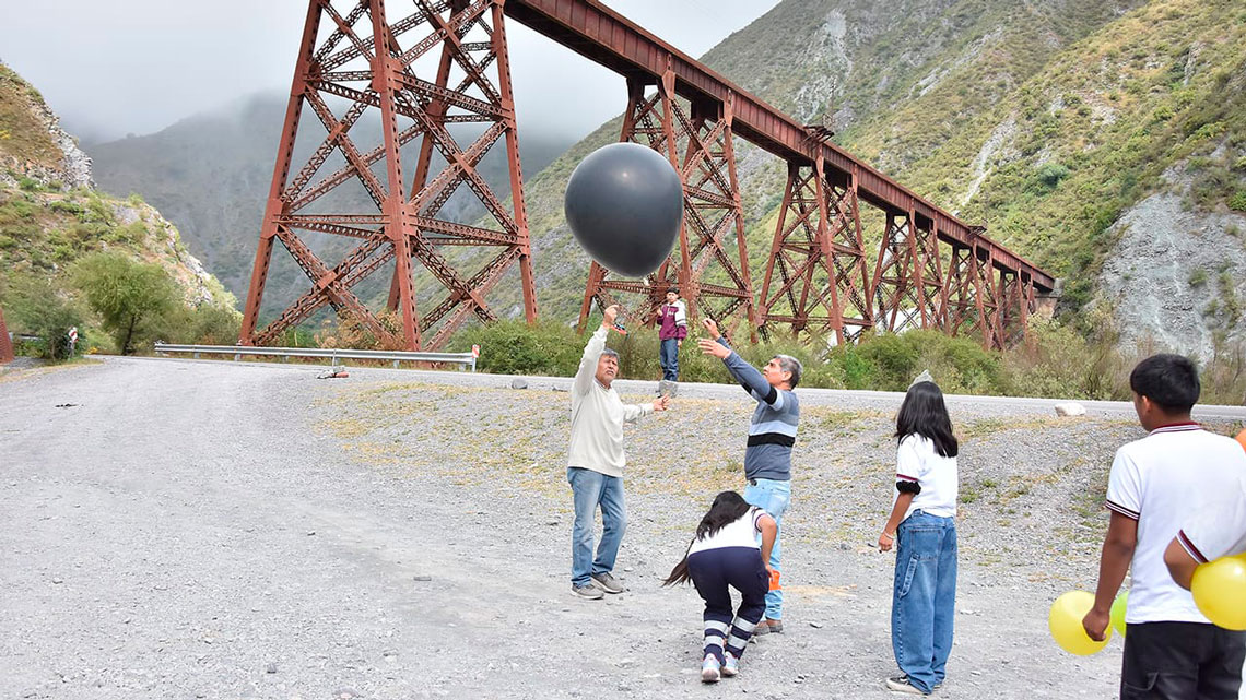 La Coordinación Estratégica de Ciencia y Tecnología del Ministerio de Educación y Cultura, junto a estudiantes de la escuela técnica N° 3106 Ingeniero Maury de Campo Quijano, efectuaron en el Viaducto El Toro, pruebas de transmisión desde un globo cautivo con gas helio, que forman parte de los preparativos para el lanzamiento final de un globo estratosférico desde San Antonio de los Cobres.